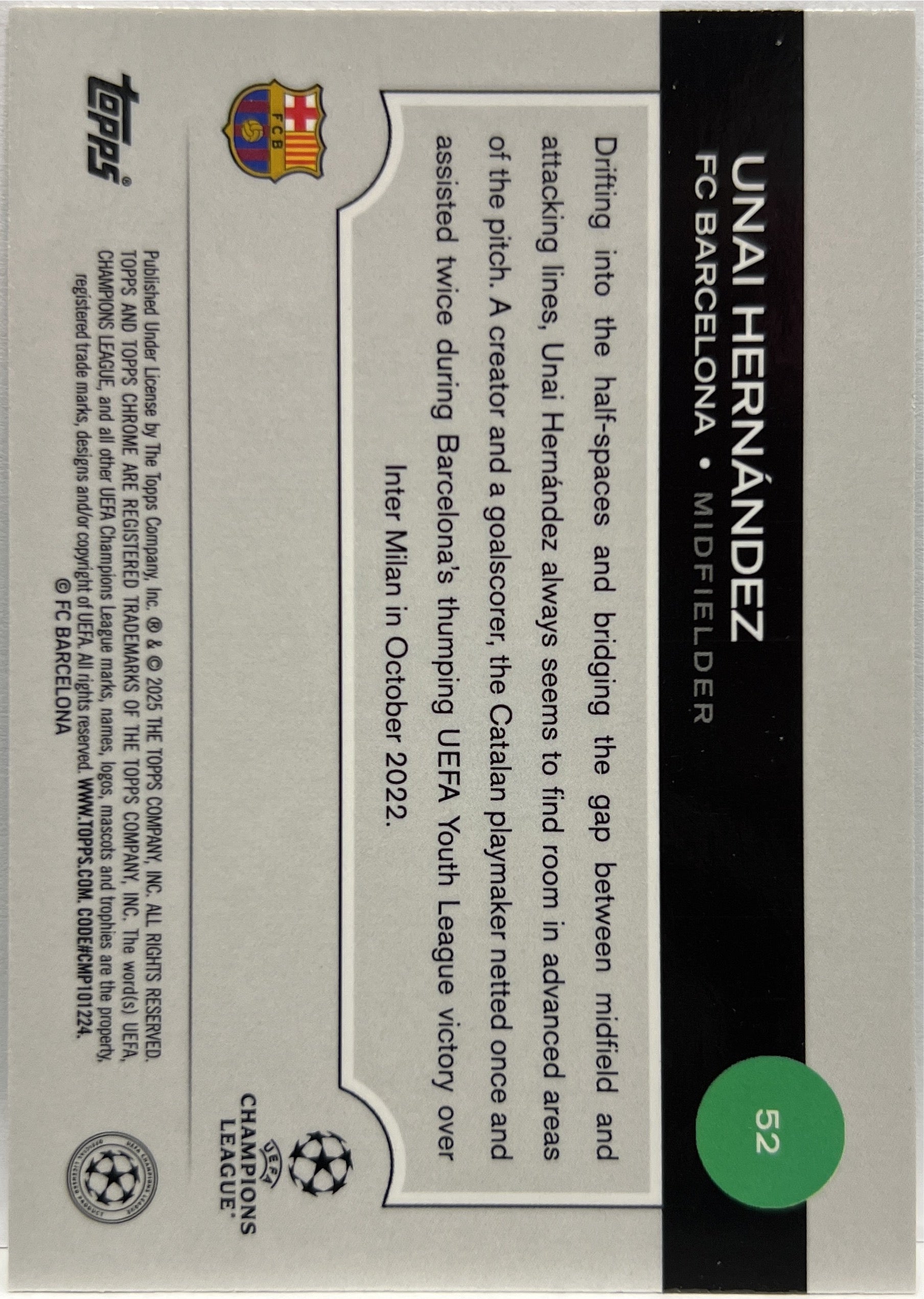 Unai Hernandez 13/199 Rookie Aqua Lava Topps Chrome UCC 2024/25 FC Barcelona