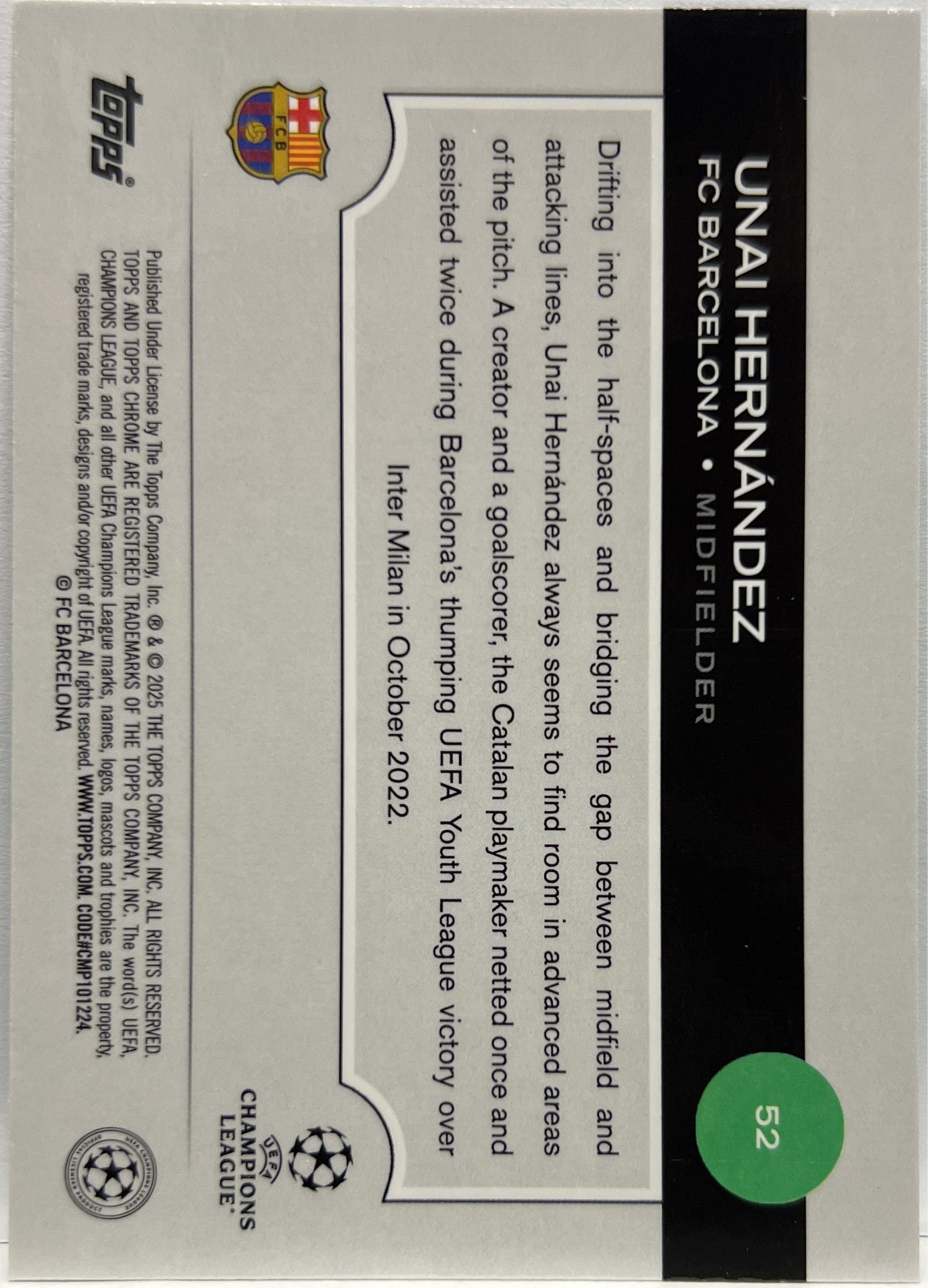 Unai Hernandez 171/199 Rookie Aqua Topps Chrome UCC 2024/25 FC Barcelona