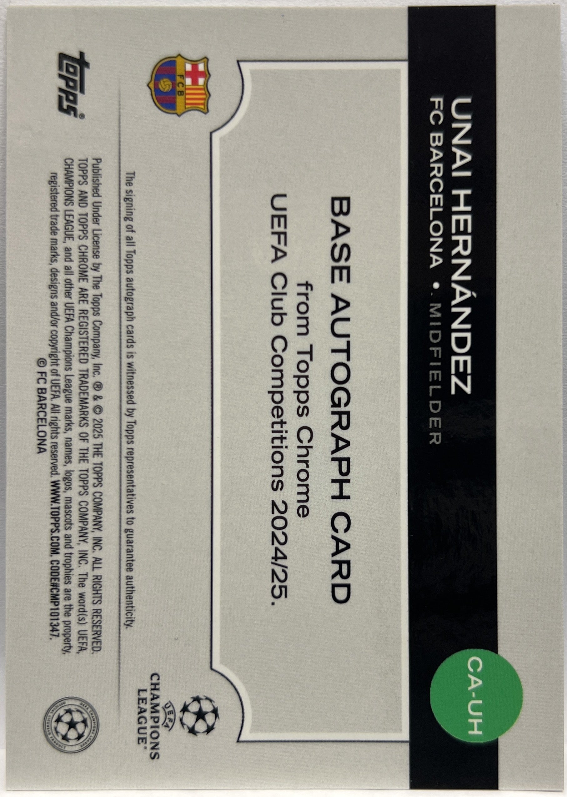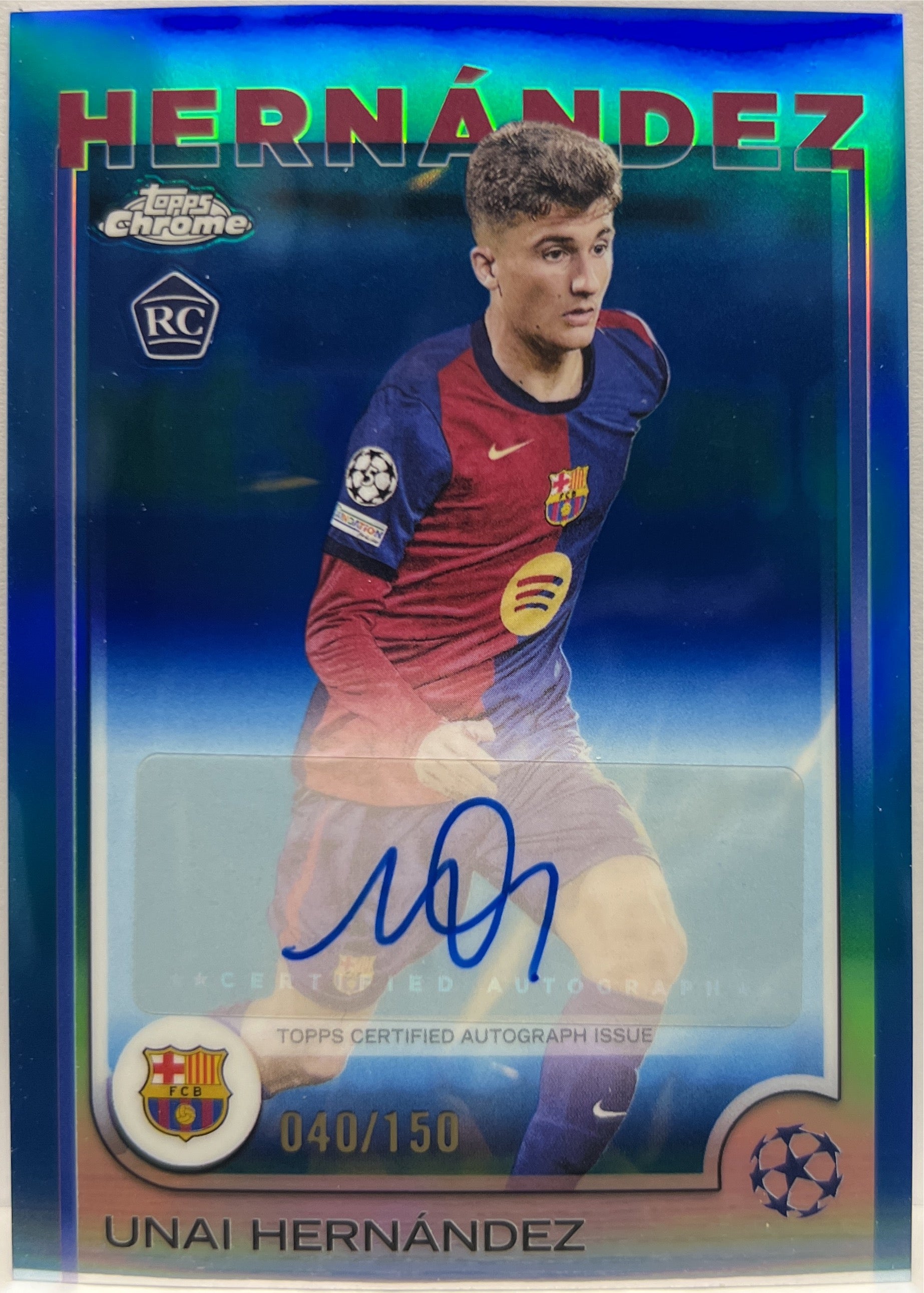 Unai Hernandez 40/150 Rookie Autograph Blue Topps Chrome UCC 2024/25 FC Barcelona