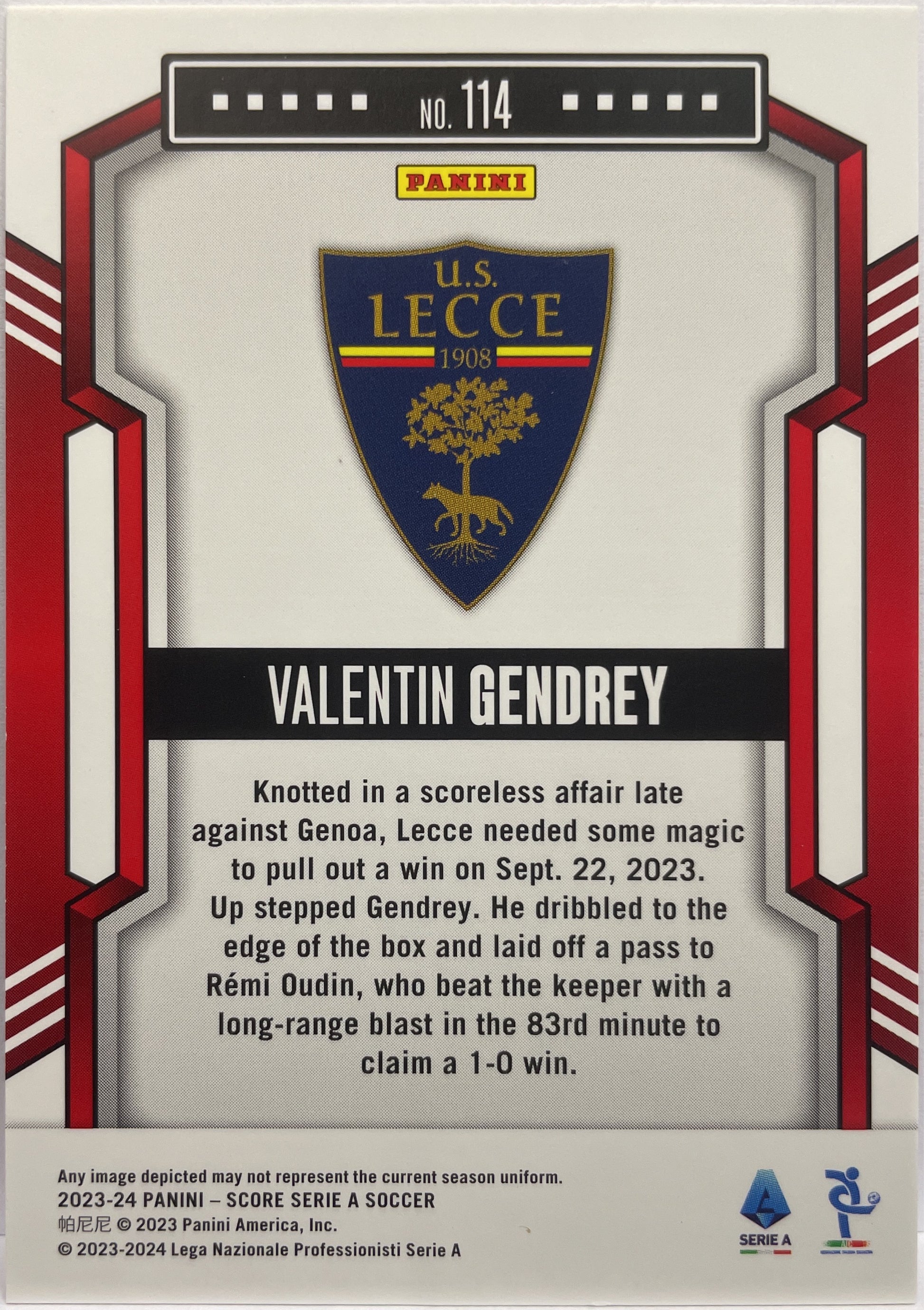 Valentin Gendrey 20/20 Pink Swirl Score Serie A 2023/24 US Lecce