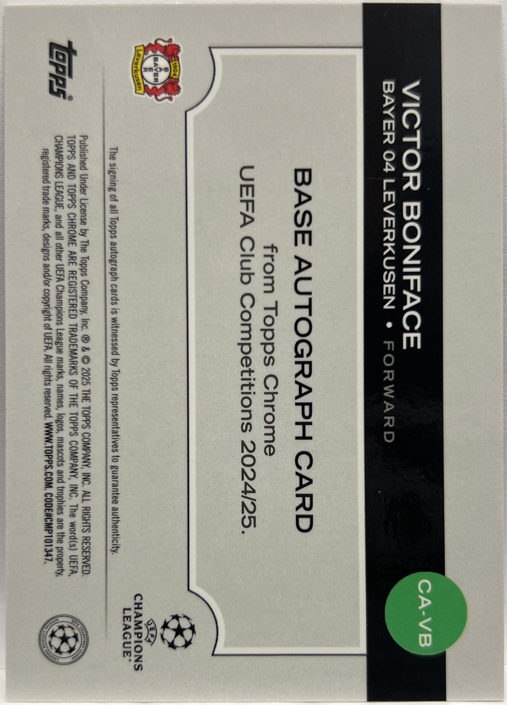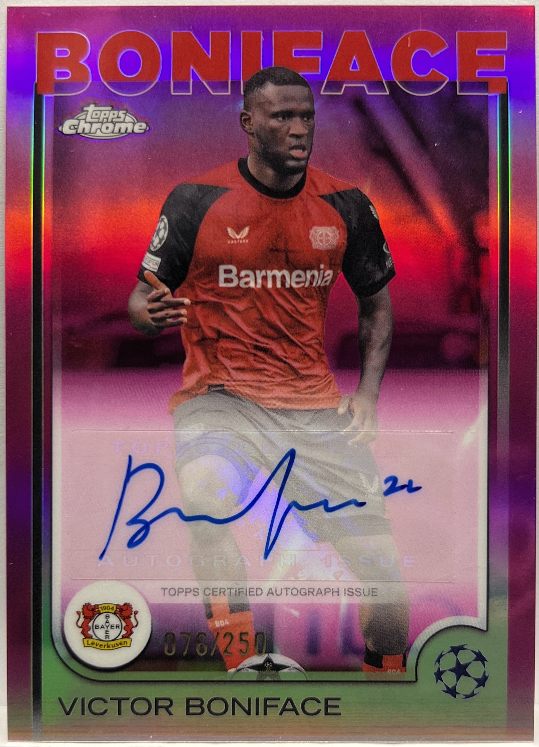 Victor Boniface 76/250 Autograph Pink Topps Chrome UCC 2024/25 Bayer 04 Leverkusen