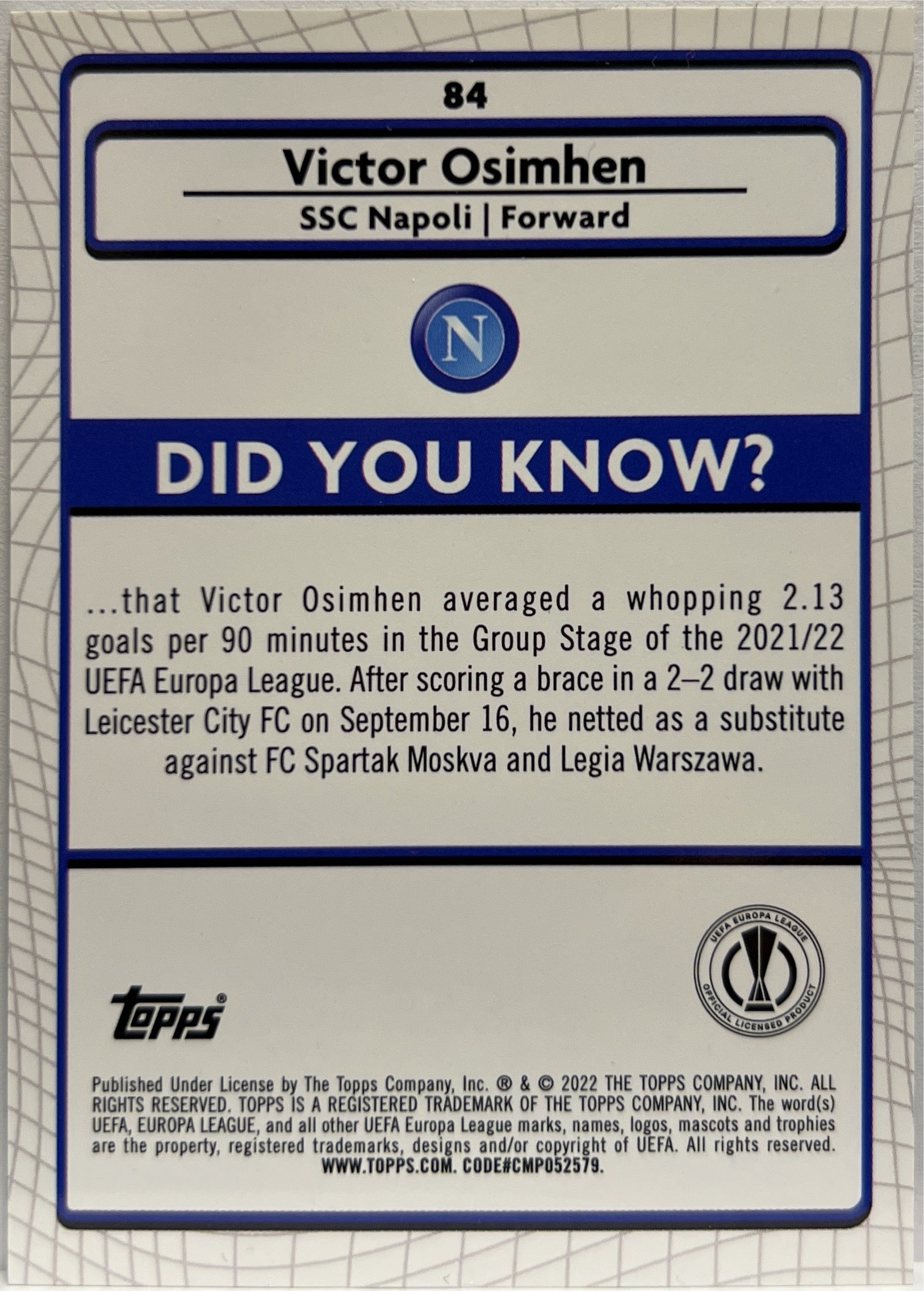 Victor Osimhen Aqua Topps Chrome Merlin 2021/22 SSC Napoli