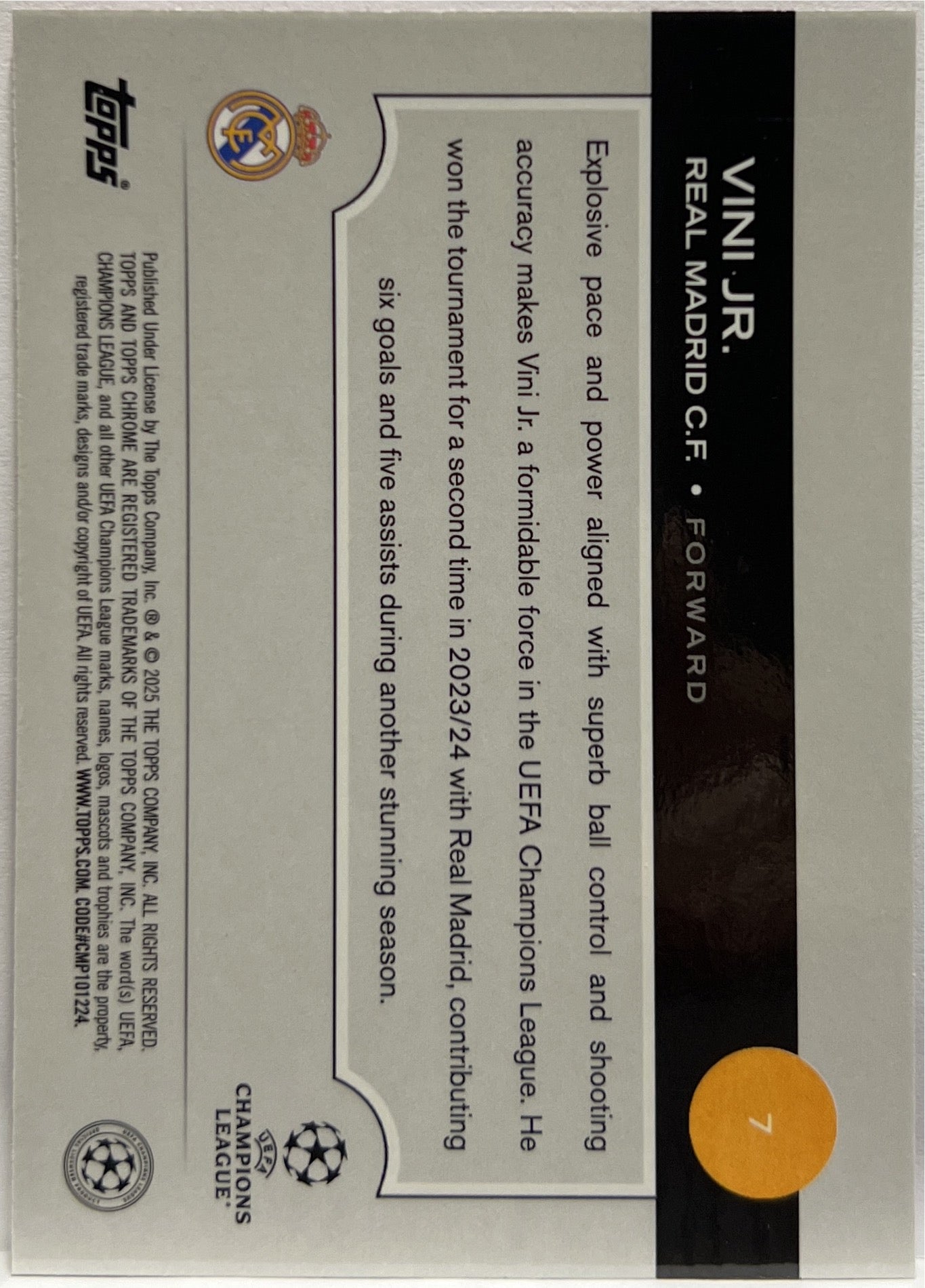 Vini Jr 84/250 Pink Lava Topps Chrome UCC 2024/25 Real Madrid