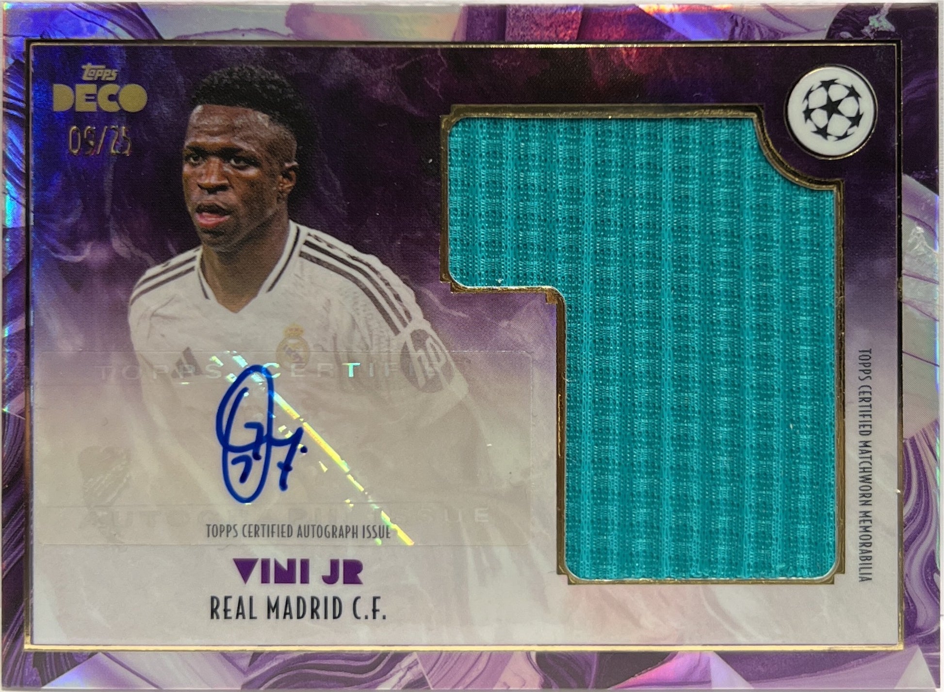 Vini Jr 9/25 Patch Autograph Antiquity Topps Deco 2023/24 Real Madrid
