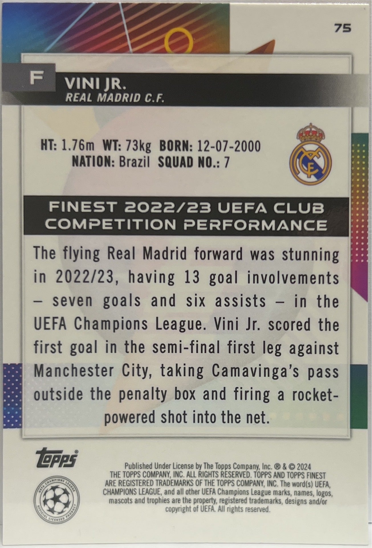 Vini Jr 9/50 Gold Topps Finest UCC 2023/24