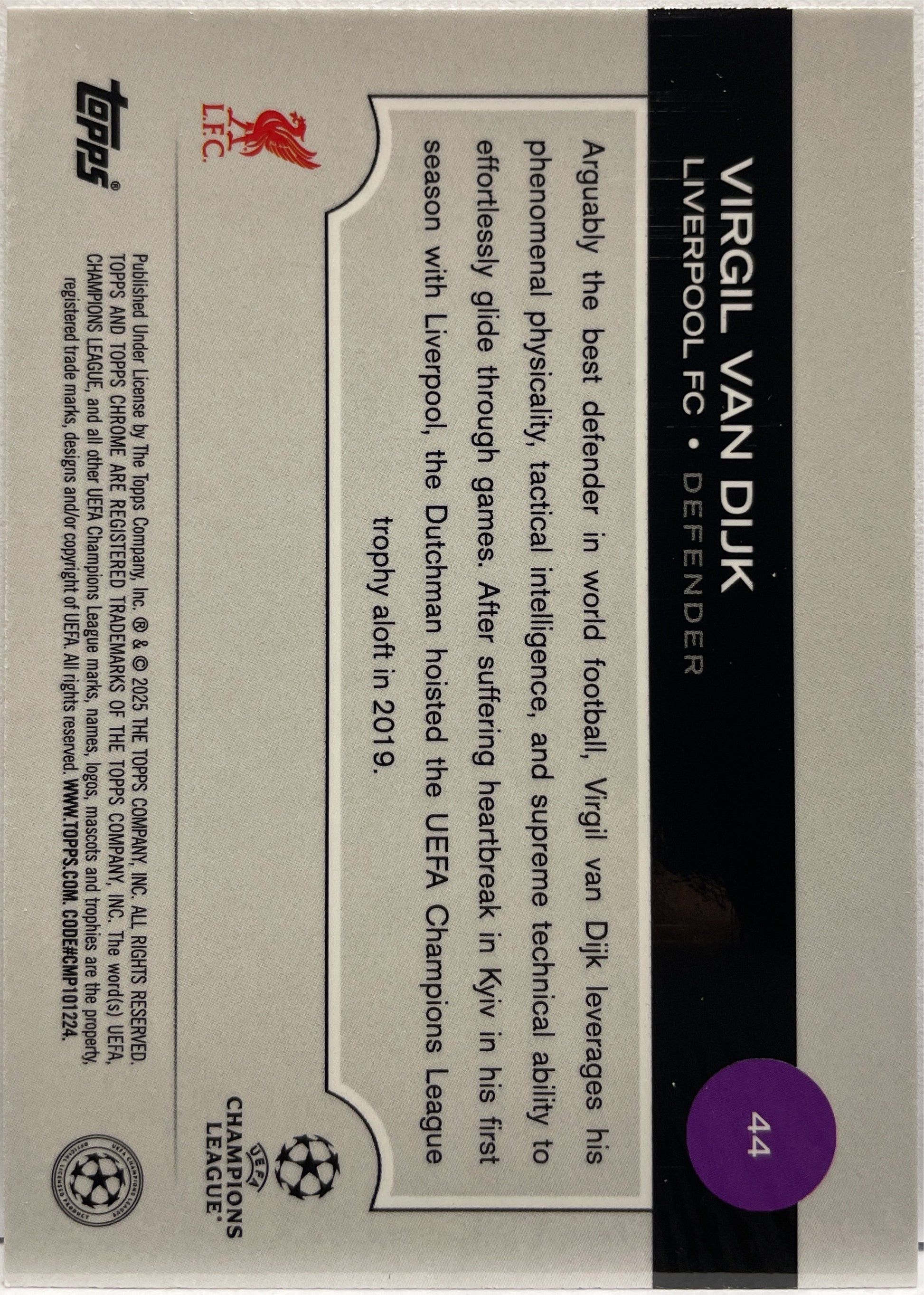 Virgil Van Dijk 22/225 Night Vision RayWave Topps Chrome UCC 2024/25 Liverpool