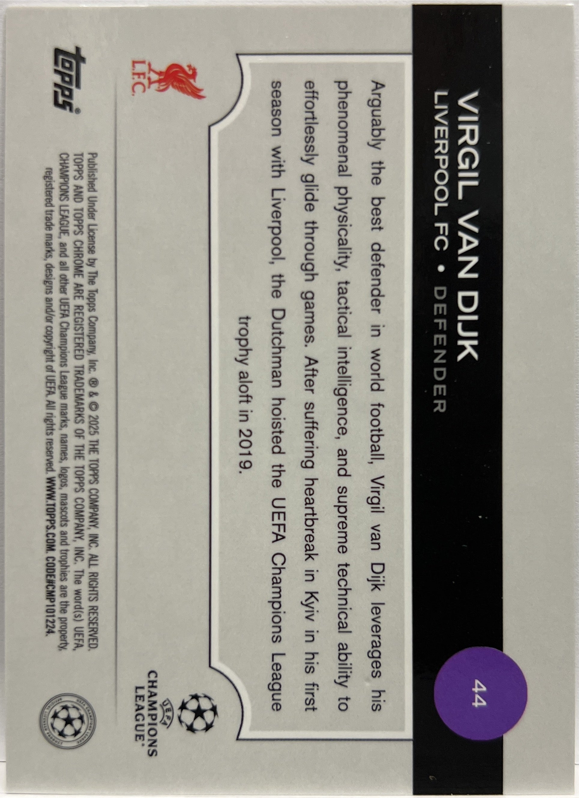 Virgil Van Dijk 26/50 Gold Topps Chrome UCC 2024/25 Liverpool
