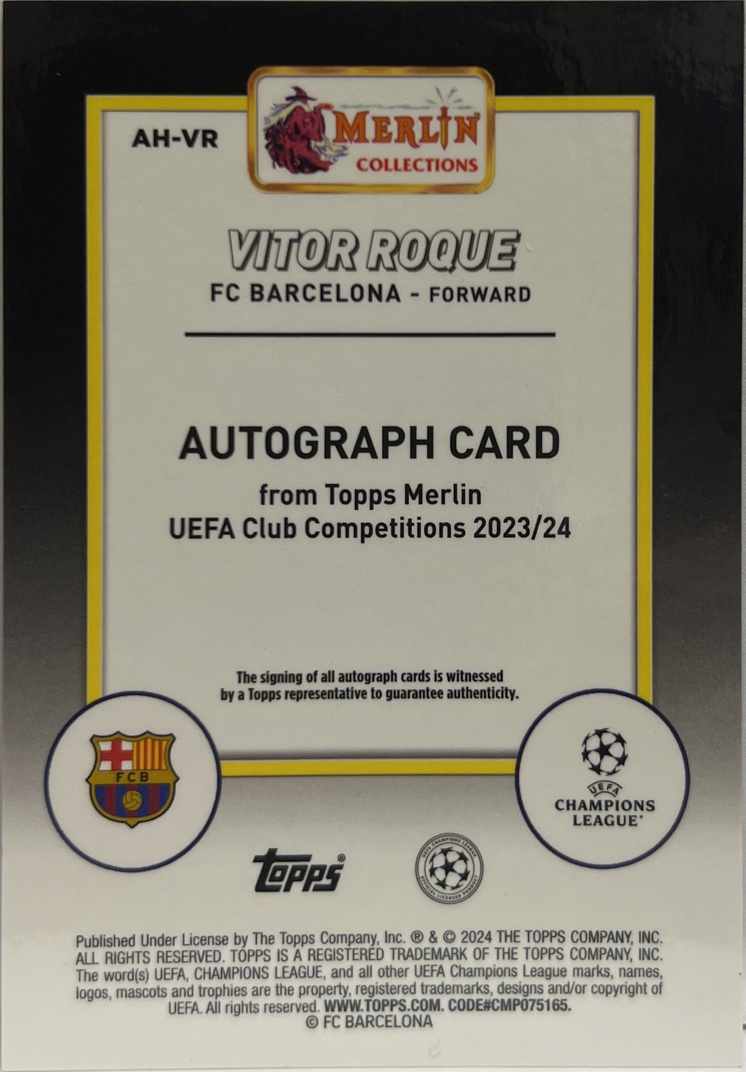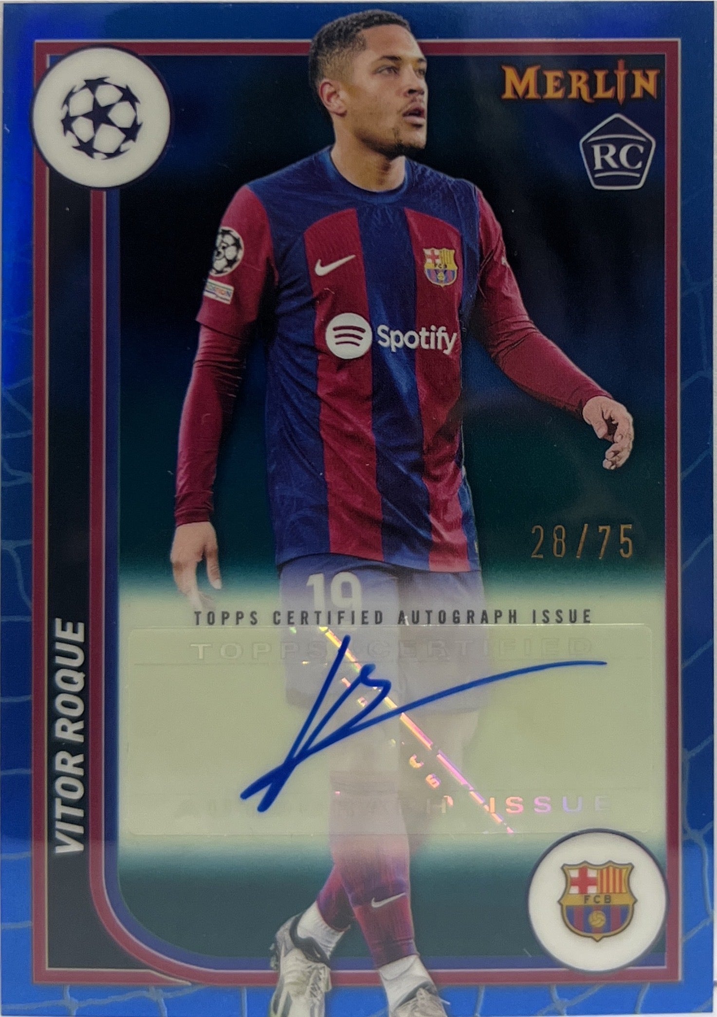 Vitor Roque 28/75 Rookie Autograph Blue Topps Chrome Merlin 2023/24