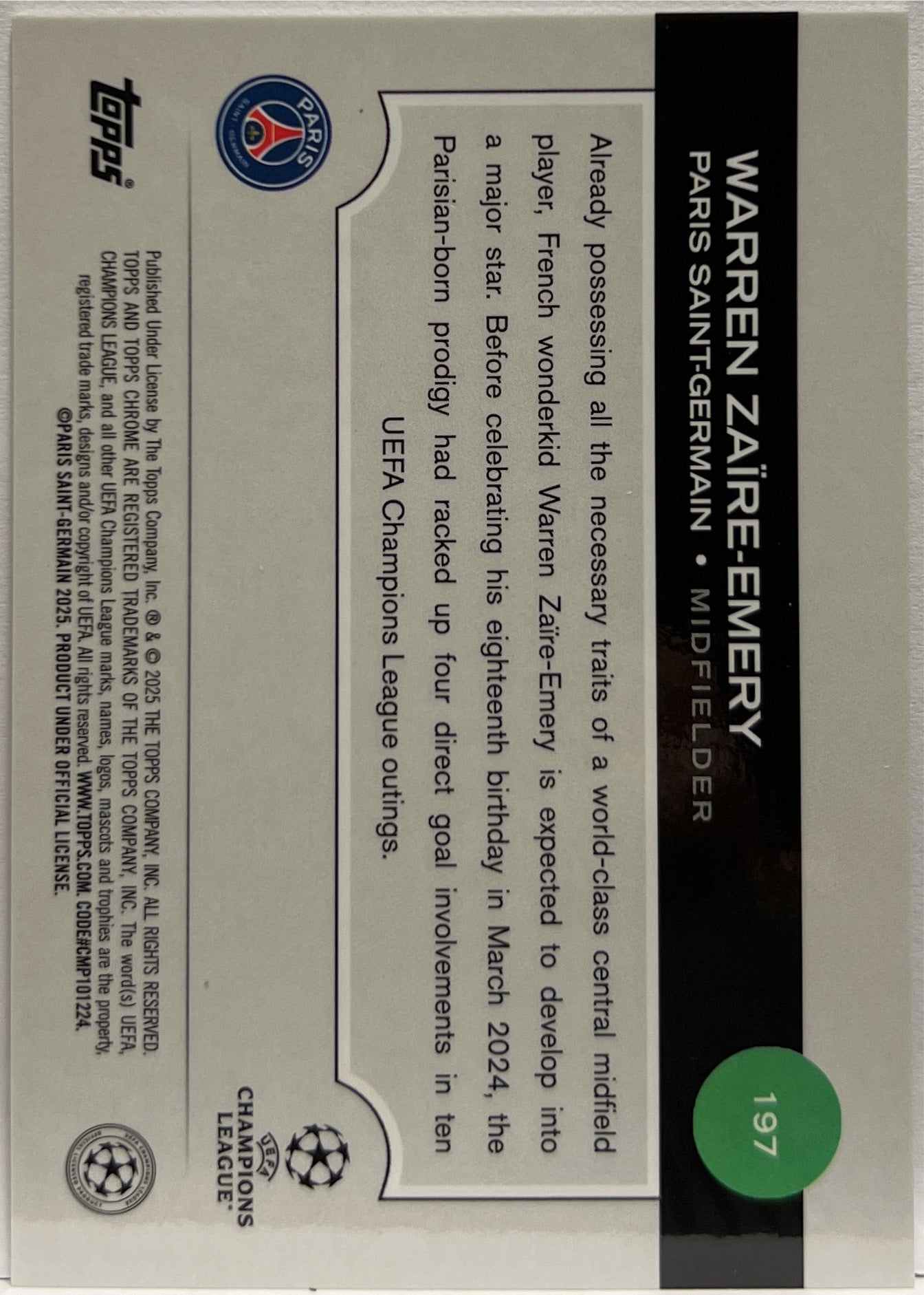 Warren Zaire Emery Orange Lava Topps Chrome UCC 2024/25 PSG