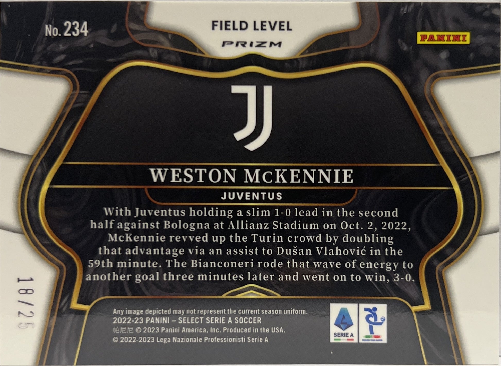 Weston McKennie 18/25 Field Level Tye Die Select Select Serie A 2022/23 Juventus