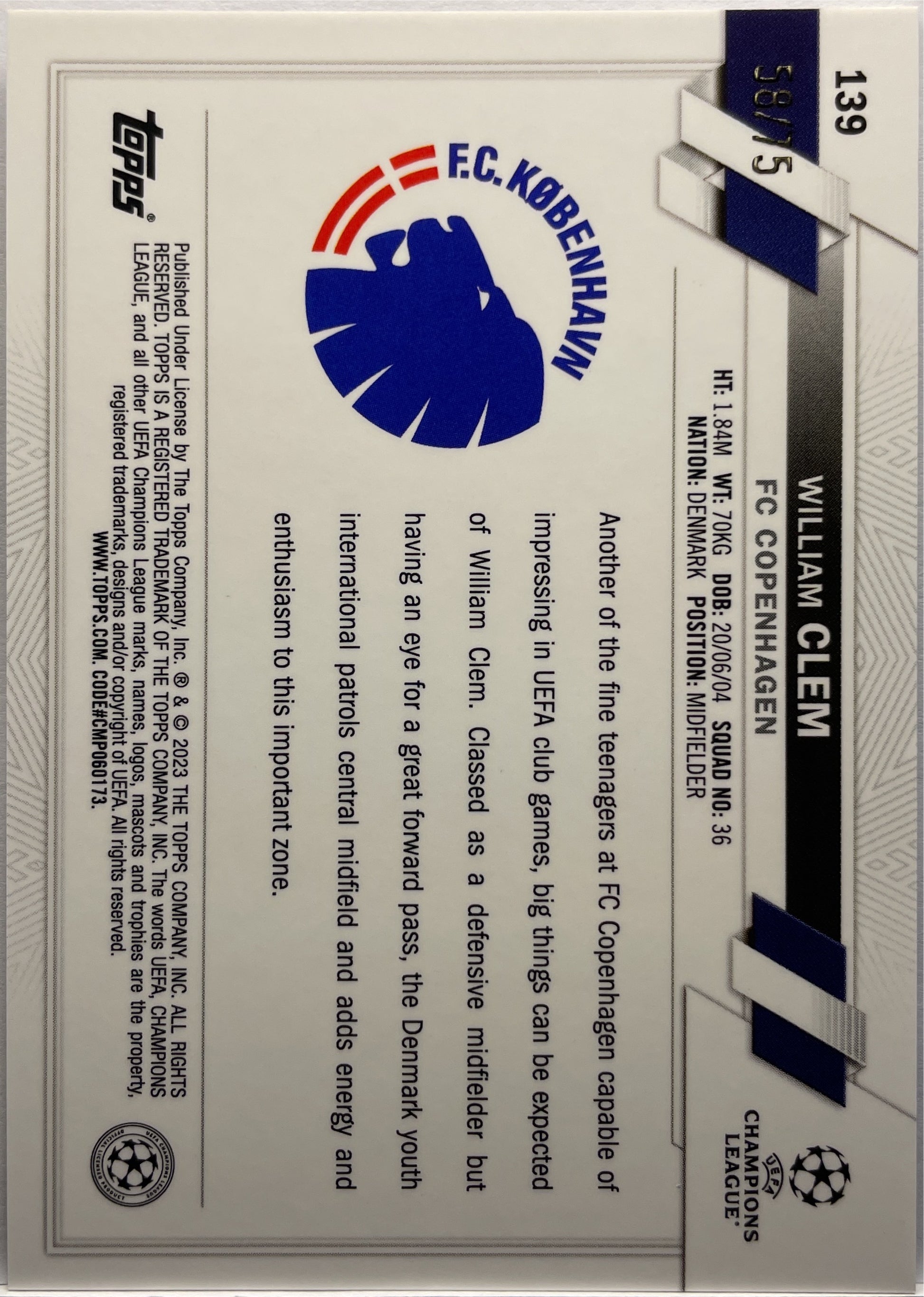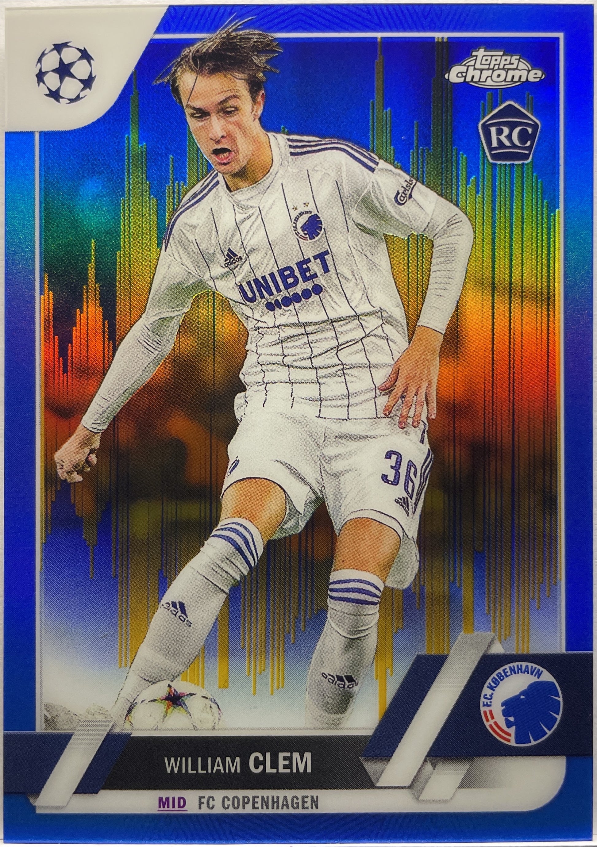 William Clem 58/75 Rookie Blue & Gold Seismic Topps Chrome UCC 2022/23 FC Copenhagen