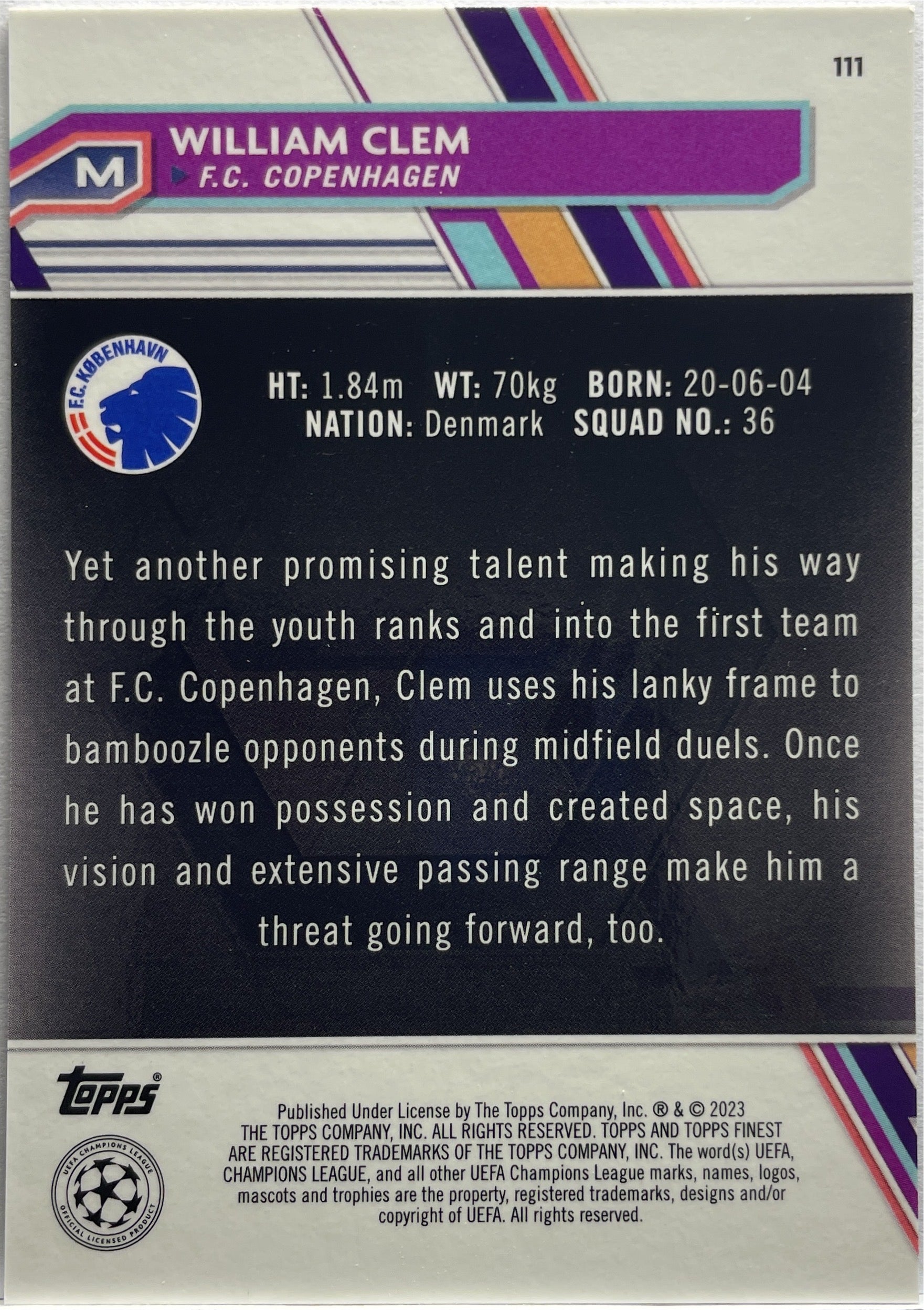 William Clem 97/99 Rookie Green Topps Finest UCC 2022/23 FC Copenhagen