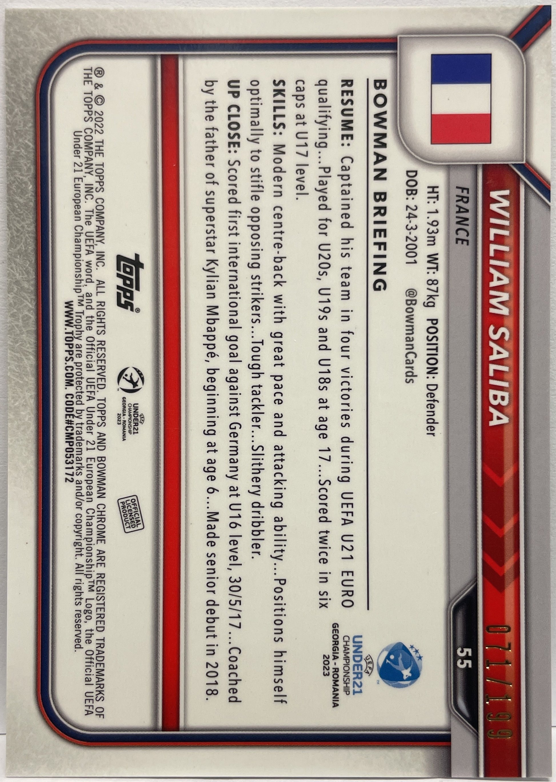 William Saliba 71/199 1ST Bowman Green Topps Uefa U21 2023 France