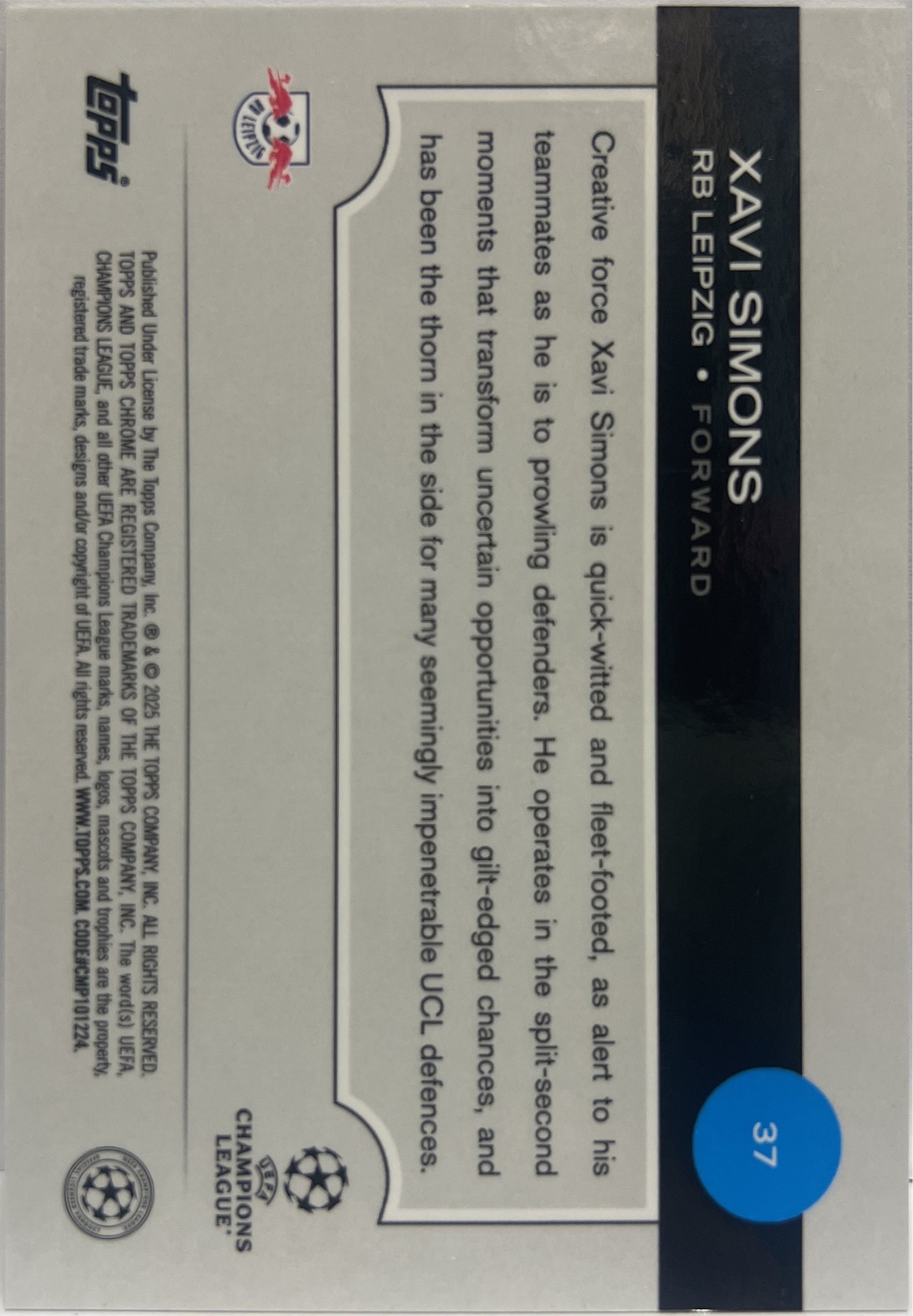 Xavi Simons 23/25 Orange Topps Chrome UCC 2024/25 RB Leipzig