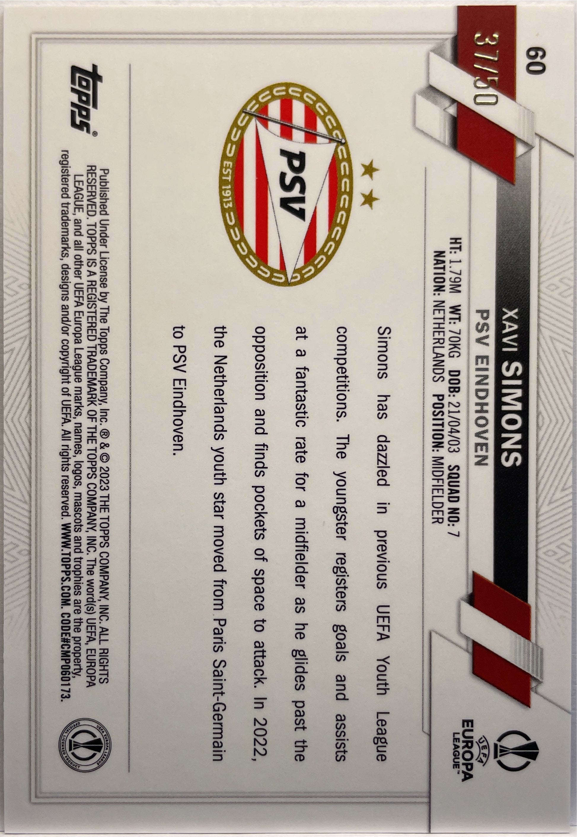 Xavi Simons 37/50 Gold Topps Chrome UCC 2022/23 PSV Einhoven