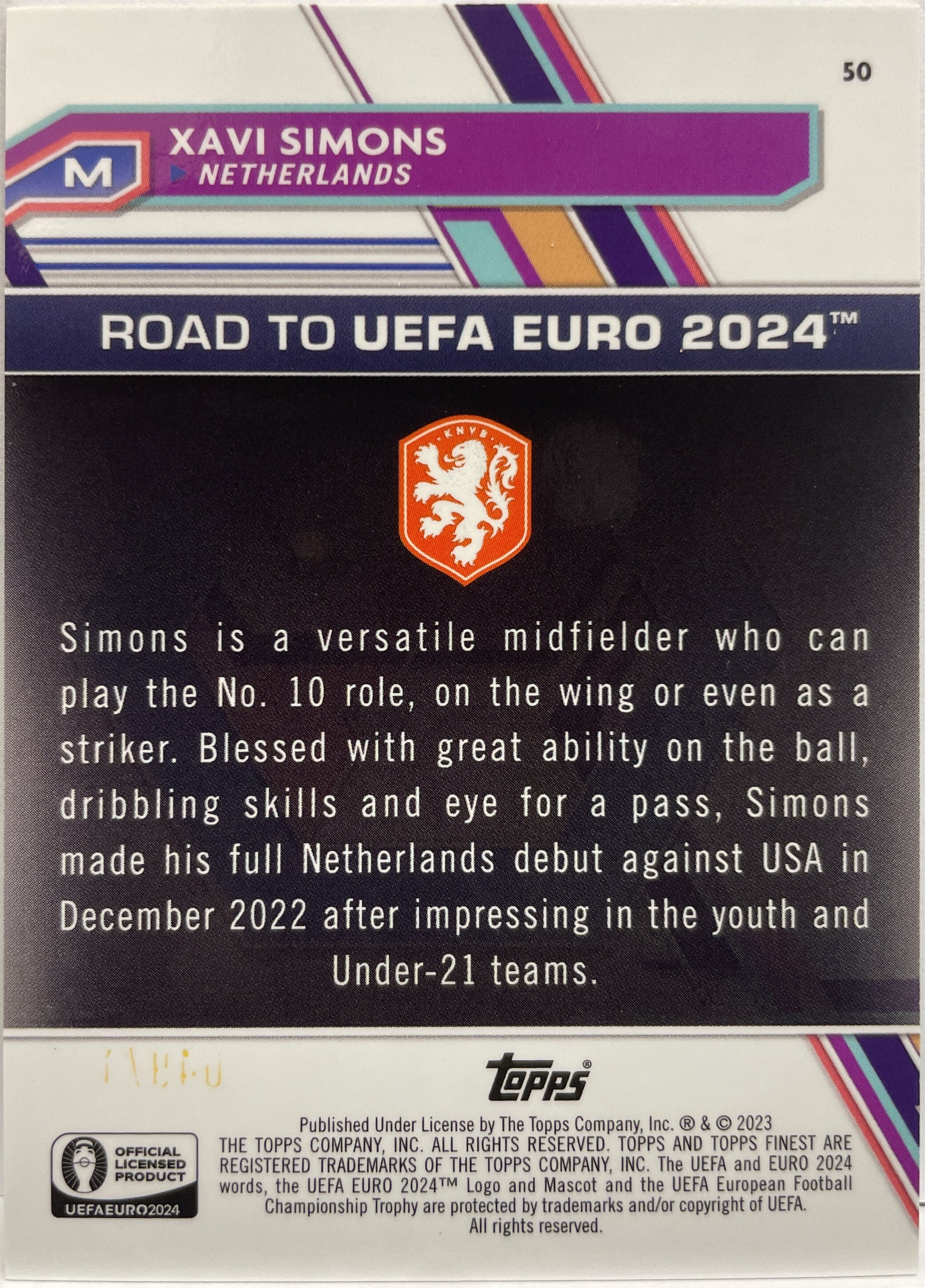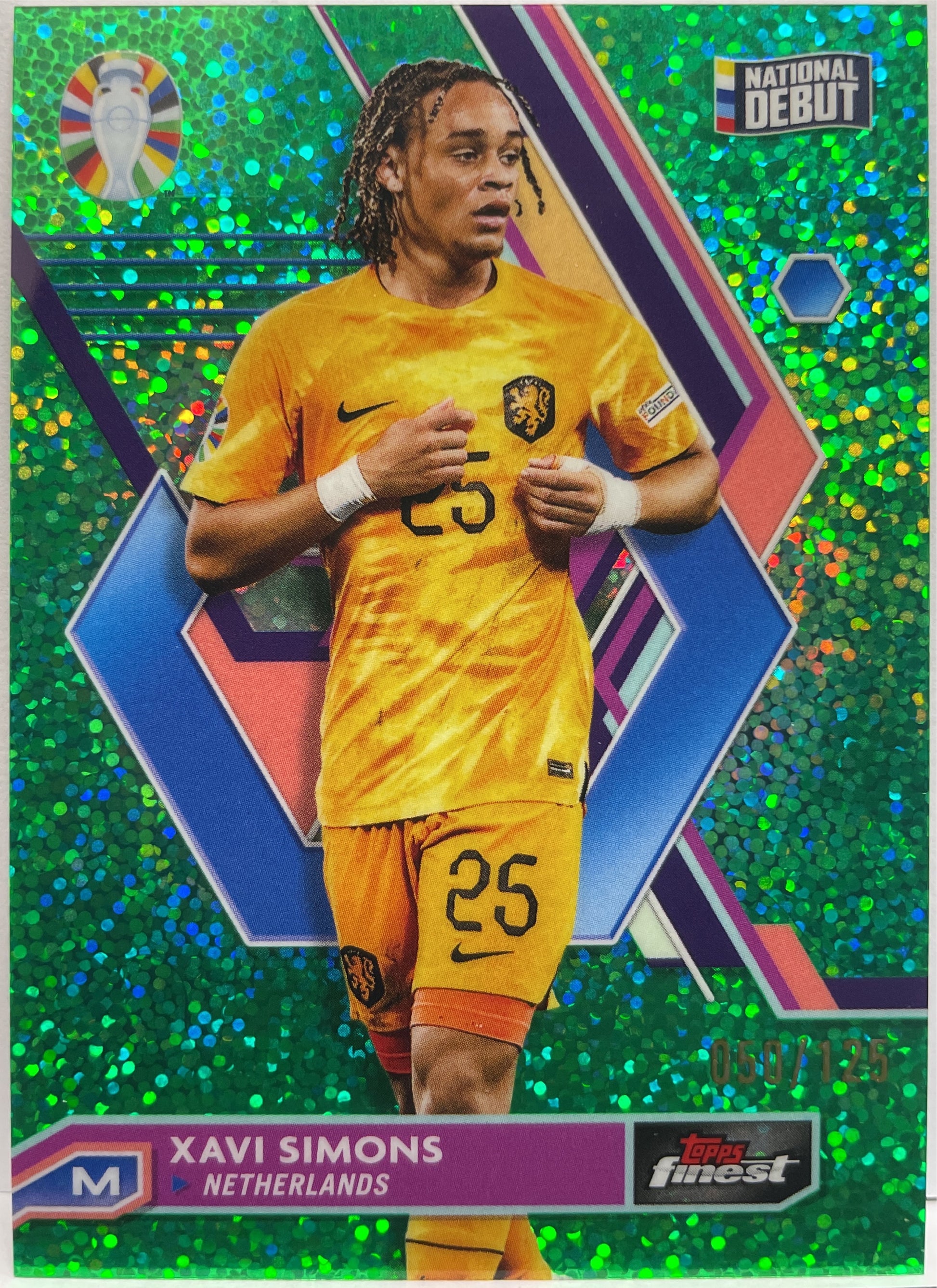 Xavi Simons 50/125 National Debut Green Speckle Topps Finest Road To Uefa Euro 2024 Netherlands