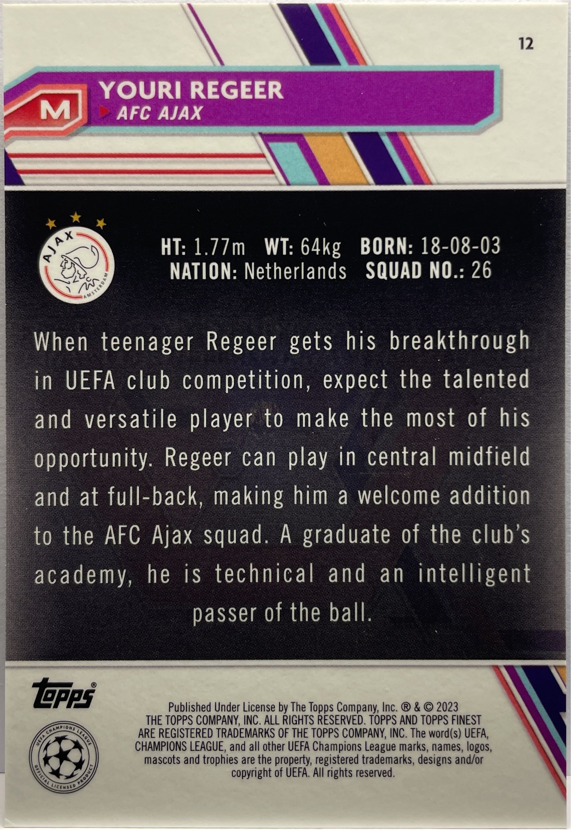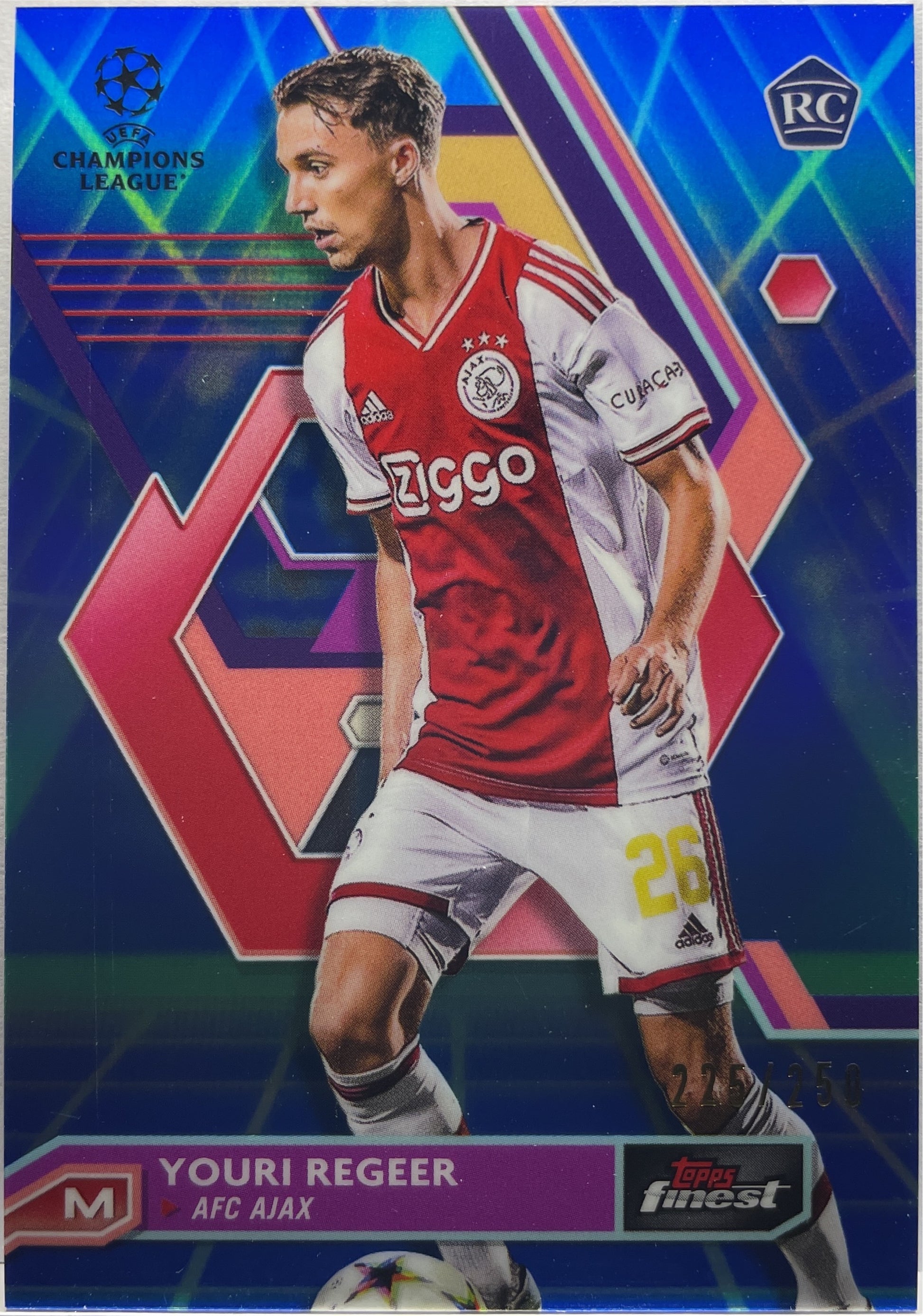Youri Regeer 225/250 Rookie Blue/Aqua Vaporwave Topps Finest UCC 2022/23 AFC Ajax