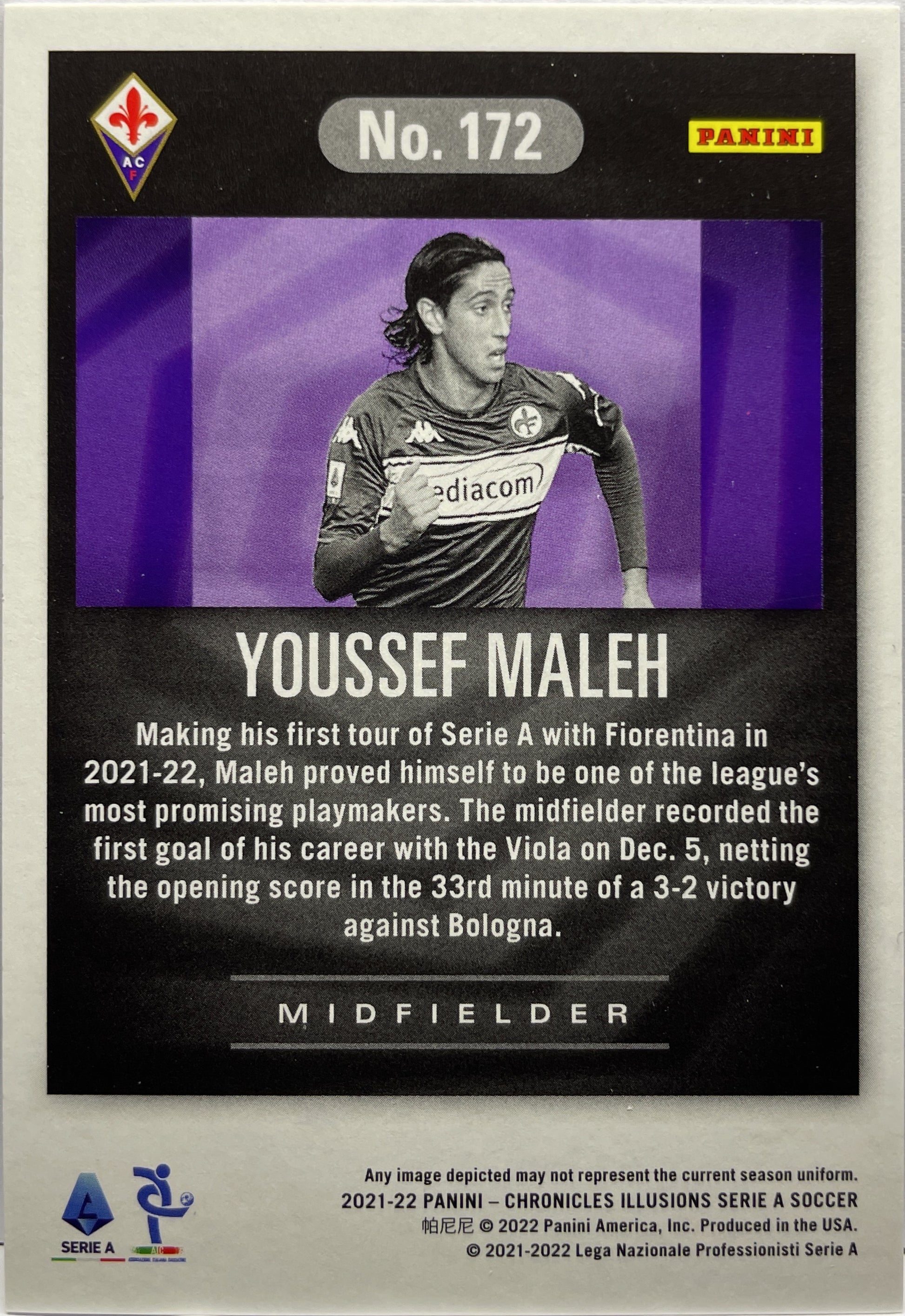 Youssef Maleh 1/1 Rookie Illusions Platinum Chronicles 2021/22 ACF Fiorentina