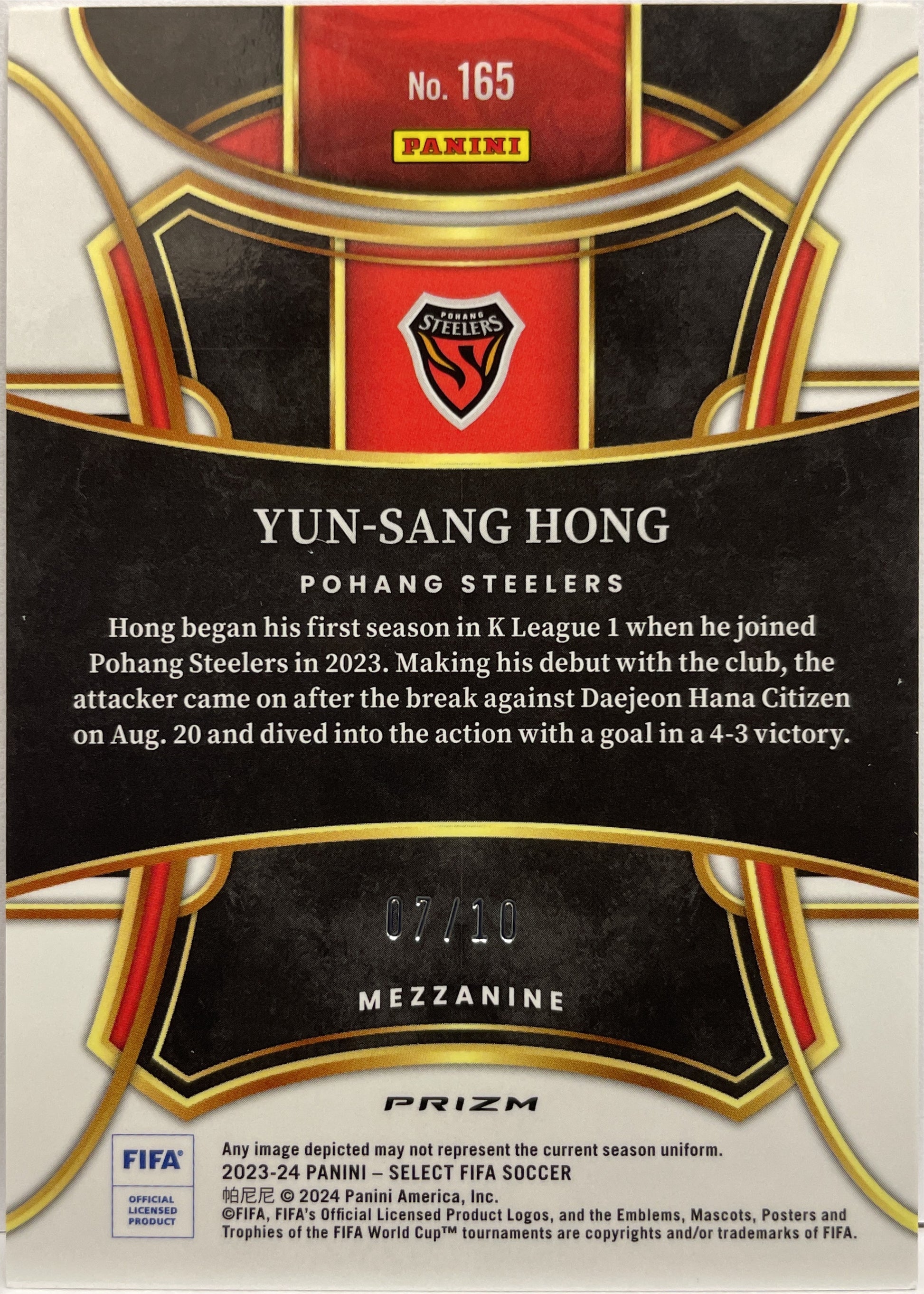 Yun-Sang Hong 7/10 Rookie Mezzanine Gold Wave Select Fifa 2023/24 Pohang Steelers