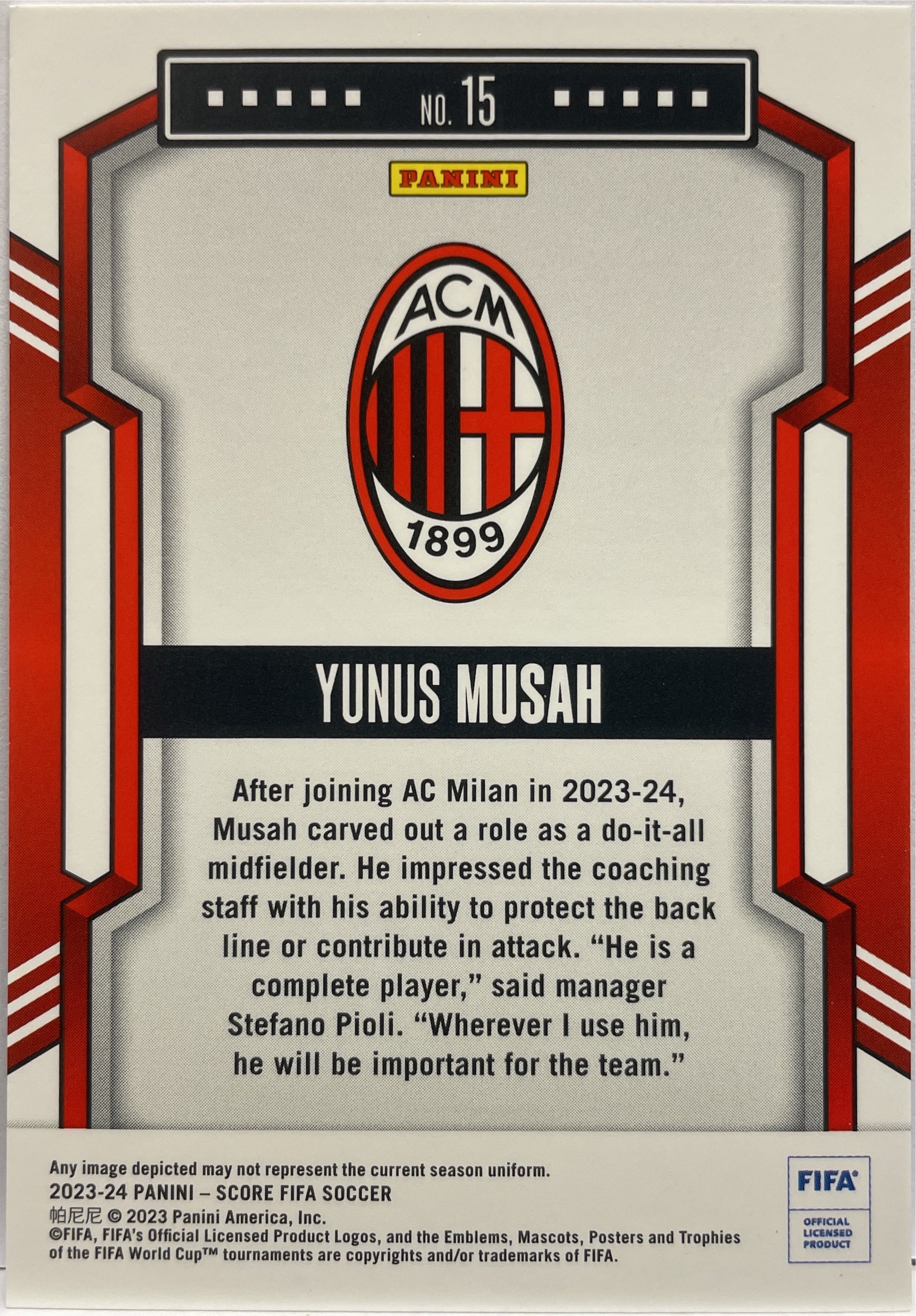 Yunus Musah 42/50 Blue Laser Score Fifa 2023/24 AC Milan