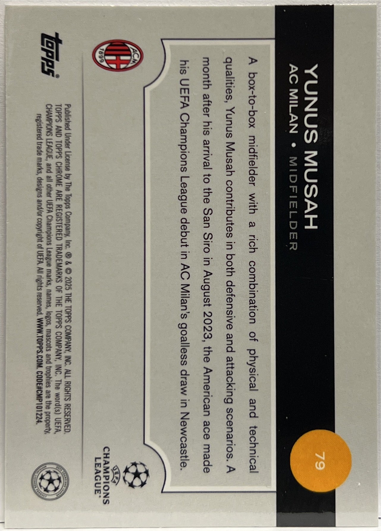 Yunus Musah 47/75 Magenta Lava Topps Chrome UCC 2024/25 AC Milan