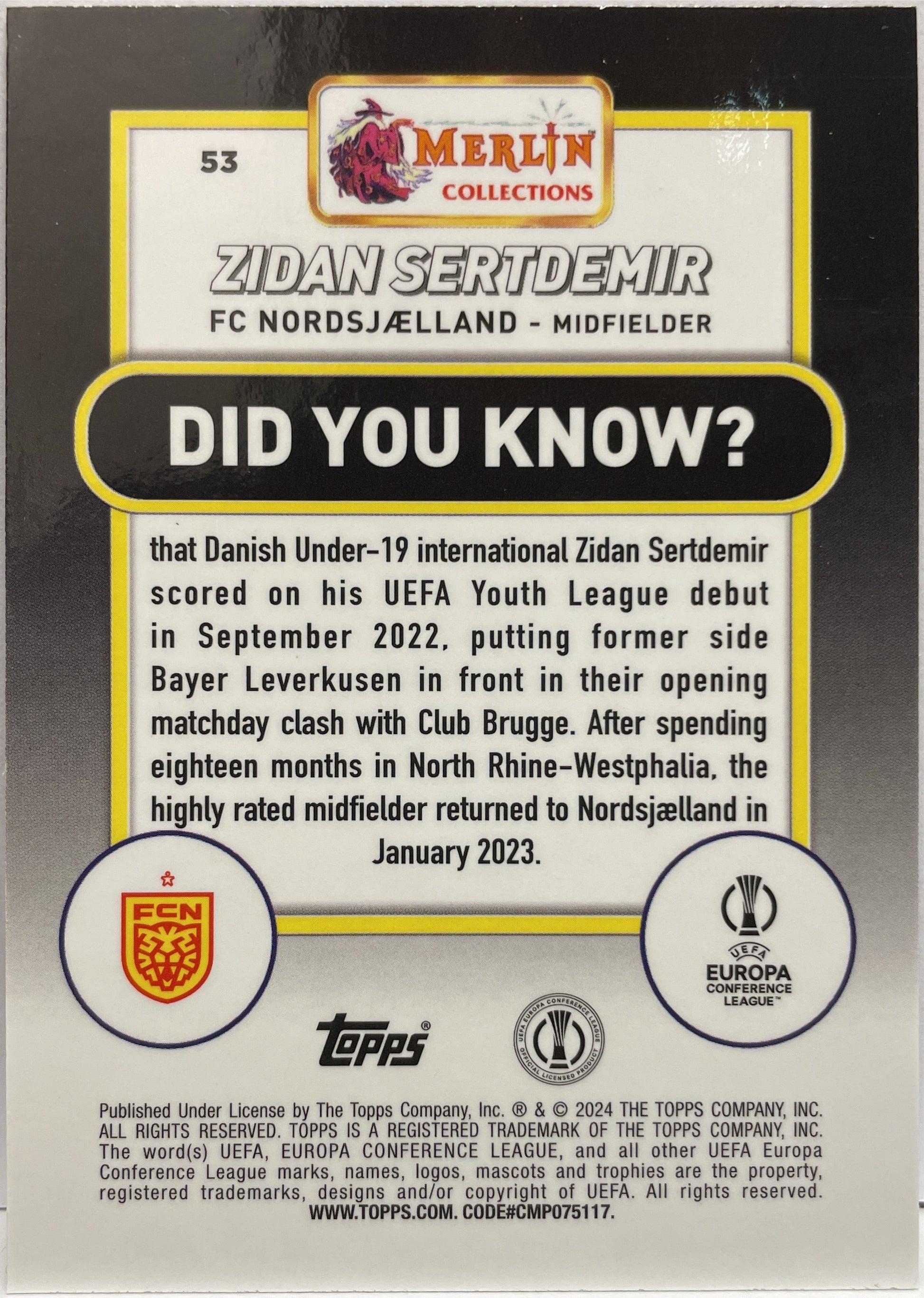 Zidan Sertdemir 265/275 Pink Mojo Topps Chrome Merlin UCC 2023/24 FC Nordsjaelland