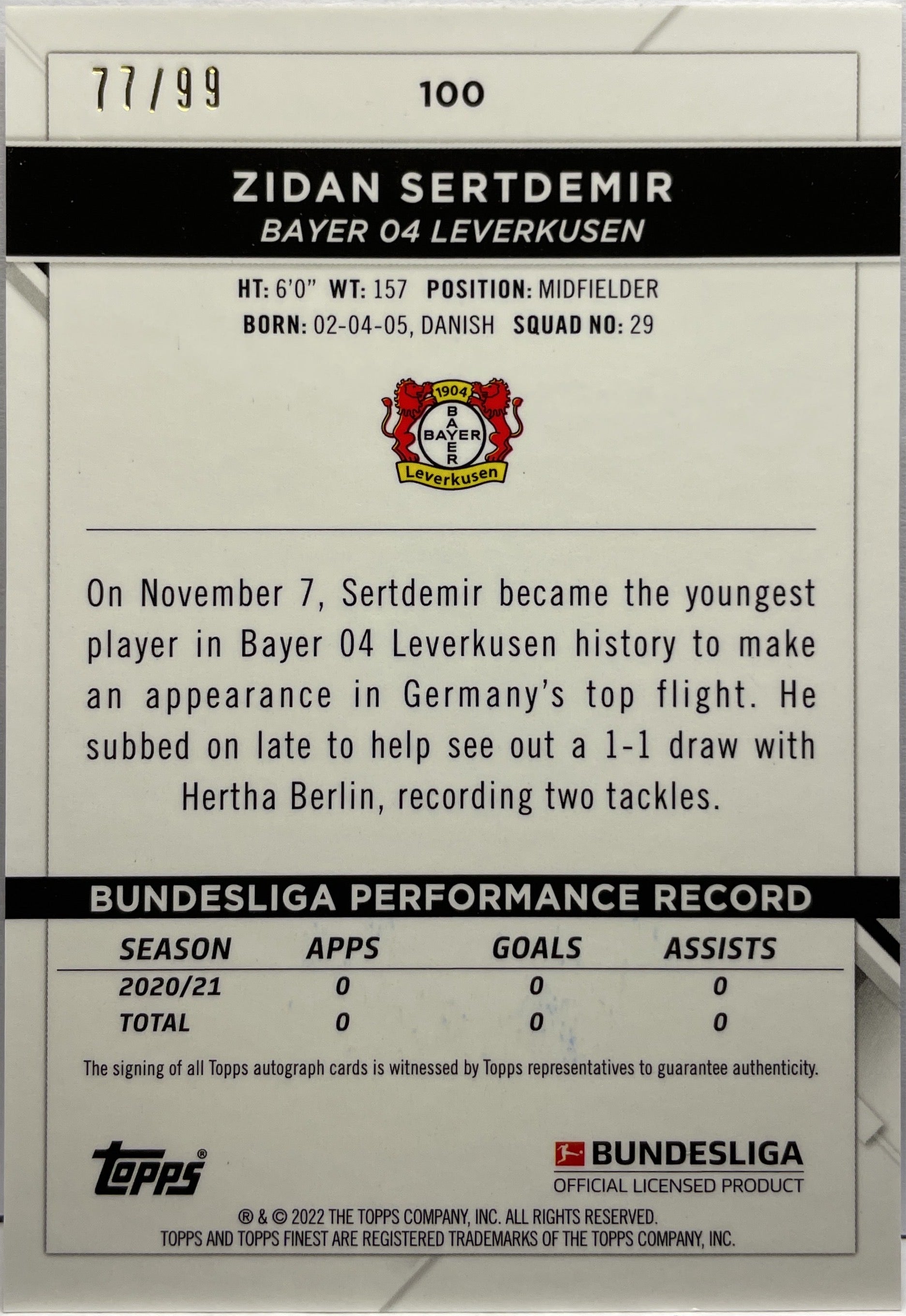 Zidan Sertdemir 77/99 Rookie Autograph Purple Topps Finest Bundesliga 2021/22 Bayer 04 Leverkusen
