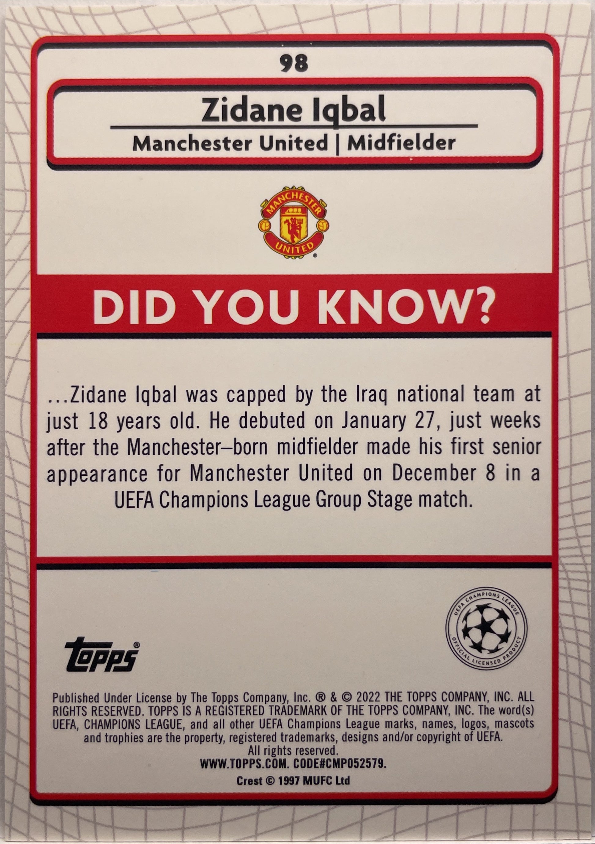Zidane Iqbal Rookie Aqua Topps Chrome Merlin 2021/22 Manchester United